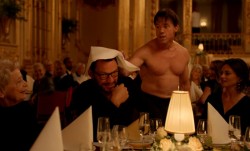 《抓狂美術館》電影中最令觀眾難忘的募款餐會橋段,正是由泰瑞諾特利與導演魯本奧斯倫一起設計。導演希望能創造出一場雖不舒服但又吸睛產生共鳴的橋段,他們兩人花了三天時間討論編排、一天時間彩排,接著便直接邀請三百個群眾演員一起加入這場驚喜晚宴。「參與演出的群眾演員只知道這是場餐會,對於接下來發生的事情一無所知。」泰瑞諾特利笑著說:「這場戲就是需要看到他們最直接的反應,這種真實的緊張感是演不出來的!」