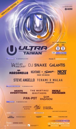 Spunite上週公布Road to UltraTaiwan(RTU)將在今年正式升級為ULTRA Taiwan後,立刻掀起網民們討論熱潮,在眾多電音迷瘋狂敲碗詢問之下,Spunite於26日公布ULTRA Taiwan 2018第一波出演陣容,EDM大批神人們即將強勢攻台!為讓台灣的電音子民們享受EDM的最頂級音樂饗宴,UMF官方特地不僅誠意十足邀請百大DJ們,DJ Snake、Marshmello、Alan Walker等電音大咖,攜帶EDM各方人馬準備攻下ULTRA Taiwan舞台,UMF更為今年首次在台現身的RESISTANCE,獻上ULTRA Miami RESISTANCE御用DJ,The Martinez Brothers、Eats Everything、Nicole Moudaber三位TECHNO大佬齊聚一堂,電音重拍強打台灣樂迷。ULTRA Taiwan 2018將於9月8及9日在大佳河濱公園,征服全台電音迷!詳情請參考:https://ultrataiwan.com/