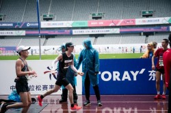 的名號,一定拼足全力努力,全馬的前一天還硬喝下4000c.c的竹蔗馬蹄水,以肝醣超補法強力增加爆發力。馬拉松清晨出發開跑時,廖允杰充滿信心愉快的邁向路程,但這次的天氣確在跑途中出現變化,本來就已經細雨的天氣突然轉為大雨,讓他一度在30k的路程出現失溫狀態,但意志力讓廖允杰撐過去,最終以3小時7分48秒打破自己預設的目標,更擠下宇豪成為演藝圈最速男人。