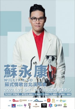 蘇永康早前於官方媒體上公開了“蘇永康2022台北演唱會”的消息。隨即引來很多樂迷、情歌迷的好奇。而今天更連同演唱會的官方海報,公布蘇永康台北演唱會將於今年6月25日(星期六)晚上7點於TICC舉行。