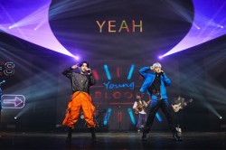 佳辰和祖安先前在北流演唱會上首次演出〈Young Blood〉,兩人搭配樂團、舞者,默契十足的舞台魅力嗨翻全場。舞台設計以祖安藍色、佳辰橘色的雙色霓虹,象徵兩人創造的全新Cyber City,EDM節奏加上future bass合成器堆疊聲音,讓整首歌電力十足且充滿未來感。舞台上他們以招牌「Rock手勢」融合簡潔的舞蹈表演,隨著節奏自然跳動,成功帶領現場觀眾一同感受脈搏跳動和思緒入侵腦中的熱血能量,營造出青春洋溢的快樂氣息。而〈Young Blood〉MV以演唱會的精彩畫面搭配全新錄音室版音源,不僅重現兩人在舞台上的默契演出,也讓粉絲再次回味當時的歡樂氛圍。
