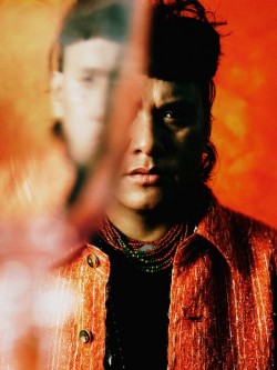 今(10/9)日桑布伊 Sanpuy 也搶先釋出了《靠近 mudalrep》專輯封面與MV側拍照,與前三張專輯相同邀請平面設計師陳世川擔綱美術設計。擅長以創意傳達獨特視覺語言的他,操刀多部經典電影海報設計,包含:《誰先愛上他的》、《怪胎》、《刺客聶隱娘》⋯⋯等,在《靠近 mudalrep》專輯的設計中,桑布伊 Sanpuy 也跳脫長期以原住民傳統服飾示人的形象,穿上橘紅色襯衫與寶藍色西褲時裝搖身一變成為「時尚歌王」,鮮豔明亮的對比與陳世川對色彩的高度敏銳結合,運用背景噴墨出自然元素的意象轉化為抽象概念,營造一種若即若離的視覺美感,同時為聽眾創造更多自我詮釋與想像的空間。專輯封面一釋出也吸引許多人關注留言:「這是哪一位國際巨星!」