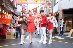 金曲歌王翁立友週五帶著豪記唱片同門師妹蕭玉芬、唐儷、林琇琪開心逛年貨大街採買開運美食,粉絲擠爆現場,翁立友笑說過年前難得有空檔來感受過年的喜氣氛圍,我是來當搬運工的,負責幫師妹們扛開運美食戰利品!