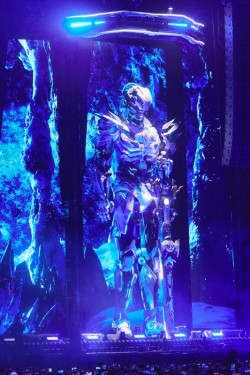 走進周杰倫的音樂世界,目光所及盡是驚喜!歌迷一入場就看到兩座12米高的巨型機器人矗立在舞台兩側,懾人的氣勢彷彿進入了周杰倫的音樂殿堂,開場以視覺特效打造的「冰封世界」震撼所有觀眾的眼球,隨著大雪融化、雷射光切出了一道門,「環狀炸水」特效噴發!舞台前方觀眾也身歷其境感受到水花淋漓的暢快,而隨之映入觀眾眼簾的是14米高巨型機甲,當機甲開啟它的座艙,「太陽之子」周杰倫以王者歸來的氣勢,一現身就融化了「冰封世界」,一連帶來「太陽之子」、「無雙」兩首陽剛正氣的歌曲,氣勢非凡!周杰倫與28位身著螢光服的舞者,以熱力四射的舞蹈,燃爆全場粉絲熱情!.jpg)