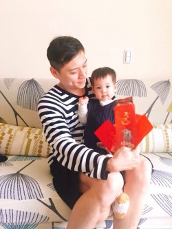 鄭人碩聽說《上岸的魚》入選芝加哥「亞洲躍動影展」,開心地教1歲的兒子放鞭炮