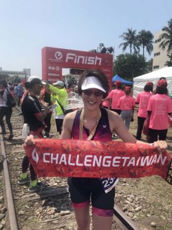此次夏嘉璐挑戰的是「標準鐵人」51.5公里的賽程,包含游泳、自行車及跑步三個項目。平日熱愛運動的她,今天頂著台東的豔陽完成賽事,也跑出了3小時53分的好成績。她表示:「其實昨晚一整晚沒睡,可能是太興奮了!但今天早上六點一下水,覺得水溫非常舒服,全身都甦醒了過來。」