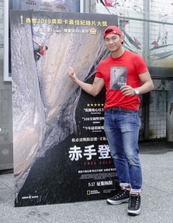 勇奪本屆奧斯卡最佳紀錄片的電影《赤手登峰》(Free Solo),日前(5/9)試片會觀影人潮大爆發,曾任《冒險王》主持人的亮哲及宥勝都趕來欣賞,宥勝更興奮表示自己看得緊張到手汗狂冒,十分刺激!《赤手登峰》描述美國攀岩家艾力克斯霍諾德(Alex Honnold)破天荒沒有任何裝備、只帶一小包止滑粉,就驚險挑戰徒手攀爬2座台北101高度的「酋長岩」,該創舉並同時刷新世界紀錄。出人意外的是,霍諾德最大心願竟是想跟湯姆克魯斯一較高下!原來他在《不可能的任務2》看見阿湯哥大秀徒手攀岩英姿,還專程跑去猶他州拍攝地勘查,竟發現山壁上裝有塑膠握把方便抓著擺POSE,不禁笑說「阿湯哥演很大!」。這部霍諾德真正搏命挑戰極限的獲獎電影《赤手登峰》,將於下周五(5/17)在台上映。