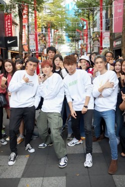成軍5年的noovy雖然曾經在日本打拼3年,但在台灣他們也累積了不少粉絲,昨日活動尚未開始,就已經有很多粉絲提早到西門町徒步區耐心等候,當noovy一現身,粉絲們瞬間從四方湧入,將noovy層層包圍,為西門町帶來一陣騷動!「人體接龍」遊戲一開始,貝斯手Jacob後面跟最多人,因為大家對新加入的他很好奇,有一位粉絲沿路跟他說撩妹話,Jacob算是第一次和粉絲零距離接觸,内心衝擊很多,但很努力的hold住了!最後計分回到集合處,粉絲跳槽回到自已原本的本命,由JK勝出。歌迷們把握可以近距離接觸noovy的機會,甚至還有師奶級粉絲從日本遠道而來,就是要以實際行動力挺noovy!語言擔當Shwan則用拿手的日文及英文,連續收服2組觀光客加入。四位團員也跟粉絲們親切互動,不論玩遊戲、合照還是送禮,都令在場粉絲心花朵朵開!主唱Shawn最後呼籲大家:「我們將在11月29日推出全新EP,請大家把這天記下來喔。」吉他手JK也表示:「今天很謝謝大家來,我們的新作品很棒,會讓你們有煥然一新的感覺!」