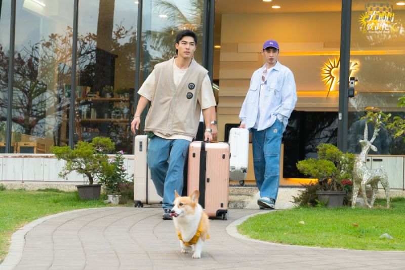 林心如、陳意涵、章廣辰迎接寵物客人來到民宿。