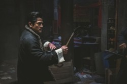 天王郭富城是全片重量級的關鍵角色,他蓄短鬍、梳油頭,詮釋心狠手辣的「殺人王」,手執鐮刀,散發殺人不眨眼的凌厲氣勢。電影裡,他和飾演「龍捲風」的古天樂是昔日好兄弟,他甚至敢安心躺在古天樂面前,讓他在下巴脖子抹泡剃鬍,無防線的肢體互動凸顯好情誼。.jpg)