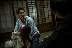 楊祐寧片中遭遇邪靈糾纏,全身僵硬、面目猙獰。