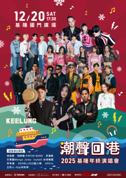 北台灣年末最強盛事再度升級!基隆市政府今(12/4)日宣布,「潮聲回港 2025基隆年終演唱會 CITY LOOP KEELUNG」將於12月20日(星期六)晚間5時30分在基隆國門廣場正式登場。本次活動以「潮聲回港」為主題,承繼去年在國門廣場的成功,今年卡司更狂、活動更好玩,邀請市民與全台遊客跟著潮流音樂一起回港,迎接嶄新一年。