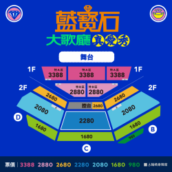 票價資訊:3388/2880/2680/2280/2088/1680/980(一般身障票為該區半價、輪椅身障票 1694/1440/1340)