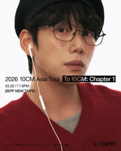 出道25年、憑藉著獨特溫柔細膩嗓音征服無數樂迷的情歌王子「10CM」(權正烈) 將於3/20再度來台開唱,在韓國樂壇有韓劇OST「音源強者」封號的他唱過的夯劇原聲帶名曲無數,包括《鬼怪》的〈My Eyes〉、《德魯納酒店》的〈Lean On Me〉、《愛的迫降》的〈But it’s Destiny〉、《那年,我們的夏天》的〈Our Beloved Summer〉、2022年《我們的藍調時光》的〈For Love〉都接連霸佔韓國各大音源榜多年時間,近年更因再次受邀演唱了《淚之女王》的〈Tell Me It's Not a Dream〉《背著善宰跑》〈Spring Snow〉及《未知的首爾》〈Sunset〉而再度讓人氣水漲船高。此外,音樂創作風格鮮明的10CM也成為眾多知名藝人爭相合作的對象,出道至今接連與潤娥、泫雅、龍俊亨及 EXO 成員世勳、燦烈所組成的小分隊 EXO-SC 合作,展現出優游於流行與抒情之間地自由穿梭的創作才華。累積25年音樂能量的10CM將把這份溫柔而堅定的情歌魅力完整帶到透過此次3/20在台舉辦的全新巡演《2026 10CM Asia Tour <To 10CM: Chapter 1> in Taipei》舞台上,以一首首陪伴劇迷與歌迷成長的經典情歌,向台灣樂迷親自告白。.jpg)