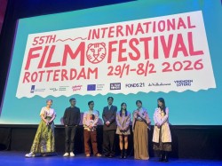 《自殺通告》電影團隊與鹿特丹影展選片人(中)。