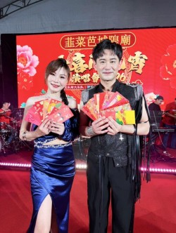 吳俊宏、林琇琪合體新加坡開唱,紅包滿天飛!吳俊宏攜手林琇琪應邀登上新加坡舞台,睽違三年,兩人再度齊聚獅城歡慶元宵開唱,林琇琪開衩禮服秀美腿,吳俊宏電眼狂放,讓現場近千名粉絲開心灑下紅包雨,而收到超過上百個紅包,兩人開心直呼紅包拿到手軟!