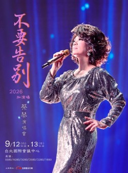 華語樂壇「絲絨歌后」蔡琴出道47年全新巡演《不要告別》自去年台北、高雄四場演出啟航後唱遍全世界,所到之處皆引起熱烈迴響,展現其經典曲目跨世代的影響力;在歷經上海、成都、北京及美國拉斯維加斯、康州、馬來西亞雲頂、澳門、新加坡等城市後,心繫台灣歌迷的她決定把這份珍貴的「不要告別」帶回自己最熟悉的起點,將於9 月 12 日、13 日連續兩天在台北國際會議中心(TICC)舉辦《蔡琴 不要告別 巡迴演唱會 2026加演場 》,要以這一年多走遍世界的感悟與豐沛情感,透過音樂與家鄉歌迷續寫那份最動人的時光約定。