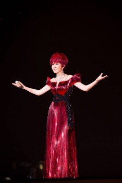 而在這驚心動魄的擊鼓聲後,二姊身穿白色天鵝絨禮服,有如清麗待放的白色睡蓮,帶來名曲<我愛過>,隨後在3D先進的投影Mapping下,她升至半空,演唱<無邊無岸>、<心狠手辣>、<苦酒的探戈>、<你不識我>等濃烈的失戀歌,搭配新穎的Mapping投影,二姊彷如在黑暗無垠的汪洋裡,白幕上出現幾何圖形的鯨魚躍過,水母也載沈載幅相隨,突然畫面又搭建出夜的街道和街景,二姊的高度剛好出現在投影的小房屋裡窗戶裡,意象的巨人掙扎的動作或舞動,再至散開,畫面搭配歌曲的整體意境令人讚嘆,目不暇給!