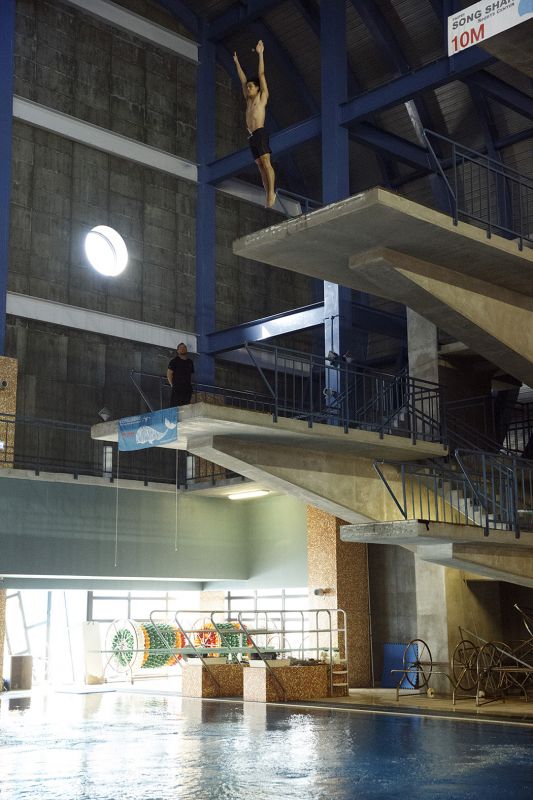蔡旻佑今從7米5高度筆直落下,直墜5米深標準池,游泳健將的他如浪裡白條悠游水中,整座運動中心都響起如雷掌聲,說到跳水初體驗,蔡旻佑說暖身很重要,而且縱身一躍的那剎那,全身肌肉要ㄍㄧㄥ 住、夾緊,不然重力加速度撞擊水面的當下,會直接打到肌肉,他形容在腳離開跳水板到身體入水的那瞬間,原本一片空白的大腦,會突然閃多許多畫面,但難以言喻:“若硬要是形容,顏色是黑的,四周不規則,像琉璃一樣。”,旻佑並說還好自己是筆直跳,曾練習過頭下腳上跳,但是實在太恐怖!最主要他上週練習時,入水角度有點偏,因此傷到鼠蹊部,被媒體笑問有沒看醫生?他笑答還可忍受,所以沒有看,“但這幾天尿尿有灼熱感”。他接受高空跳水試煉,完成『智仁勇』三達德挑戰,可喜可賀,但唱片公司也如臨大敵,特別為金童投保3千萬意外險,蔡旻佑本身對高台跳水沒太大擔心,反而是裸上身讓他有點遲疑,笑稱自己3年沒練身體,但媒體讚他胴體線條勻稱、好看,還是青春的肉體,他害羞說:“可能我都有持續不懈游泳吧!”,達成終極任務,接下來他將正式為新專輯《我和我的布拉姆斯》全力投入宣傳!
