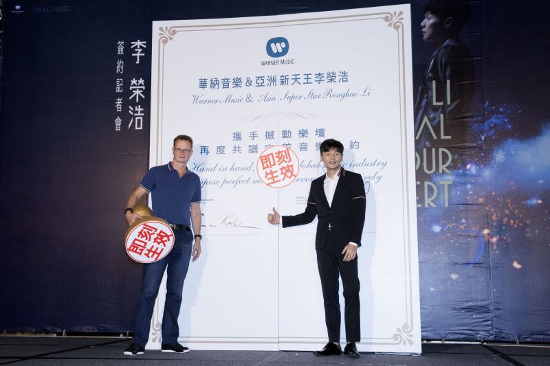 華納音樂與李榮浩合作如今將屆滿第三個年頭,為趕緊與所有人分享喜訊,華納音樂這天也為李榮浩隆重舉辦簽約記者會,宣布雙方二度簽約。記者會上,李榮浩先是感謝華納一路以來的支持及協助,更提到華納音樂大中華區總裁陳澤杉總是給他極大的發揮空間,表示雙方合作的相當愉快並充滿信任!而在正式的簽約儀式上,不僅杉哥到場,華納唱片亞洲辦事處亞洲區總裁Simon Robson更特地為此飛來台灣出席盛會,除了要親自參與這歷史性的一刻,更顯示對李榮浩的重視。正式簽約開始,李榮浩及Simon Robson先是在身後的大型合約簽名以茲紀錄,最後兩人更在合約一起蓋上大型『即刻生效』印章,象徵合約即日起正式生效,也希望李榮浩未來能繼續與華納音樂攜手共創更多紀錄!