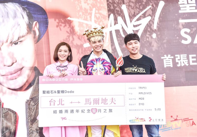 WebTVAsia欣慰聖結石首張EP大開紅盤,也準備了馬爾地夫雙人來回機票,送給聖氏夫婦,慰勞近期宣傳的辛苦,聖結石也開心可以偕愛妻Dodo來趟熱帶島嶼之旅,被關心做人進度,聖結石笑說,從婚後到現在一直都有在努力,但是目前還沒有動靜,可能是緣分還沒到,還無厘頭笑說最近有在練游泳,學蛙式,希望讓自己體力更好一點!此外,在作品方面,他發現網友可能誤會他要去當歌手而不拍影片了,聖結石強調自己仍然致力在拍出讓大家滿意的影片,請大家一樣支持並拭目以待喔!