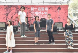 1010「雙十宣誓場」表演團體 由左至右 臺中在地樂團「約翰飛行」、新生代樂團I Mean Us、還有來自泰國超夯復古電子搖滾樂團TELEx TELEXs